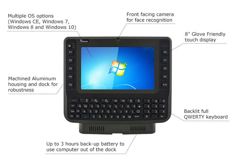 Compact 8” truck PC complete with full keyboard for those applications needing key input.